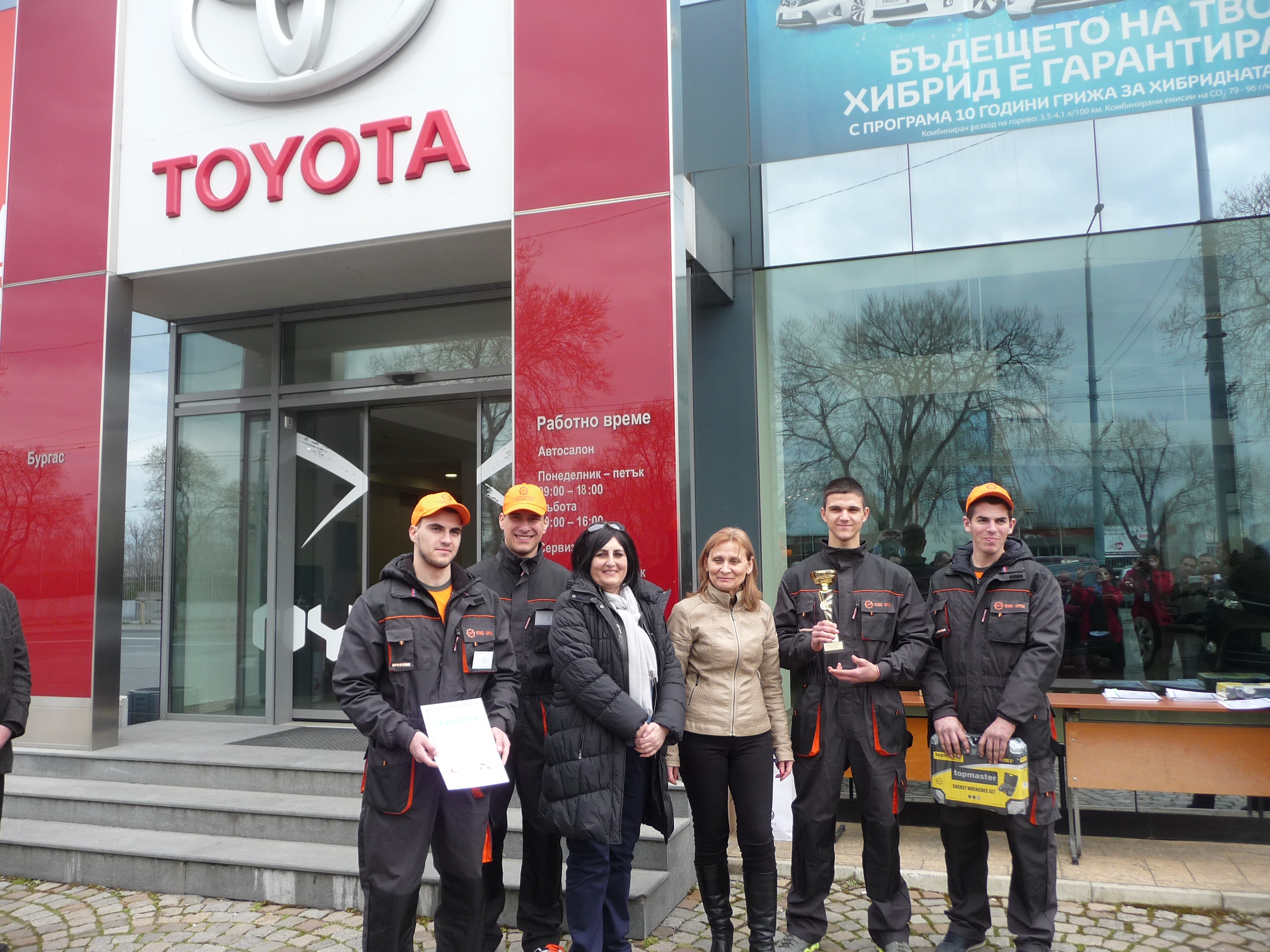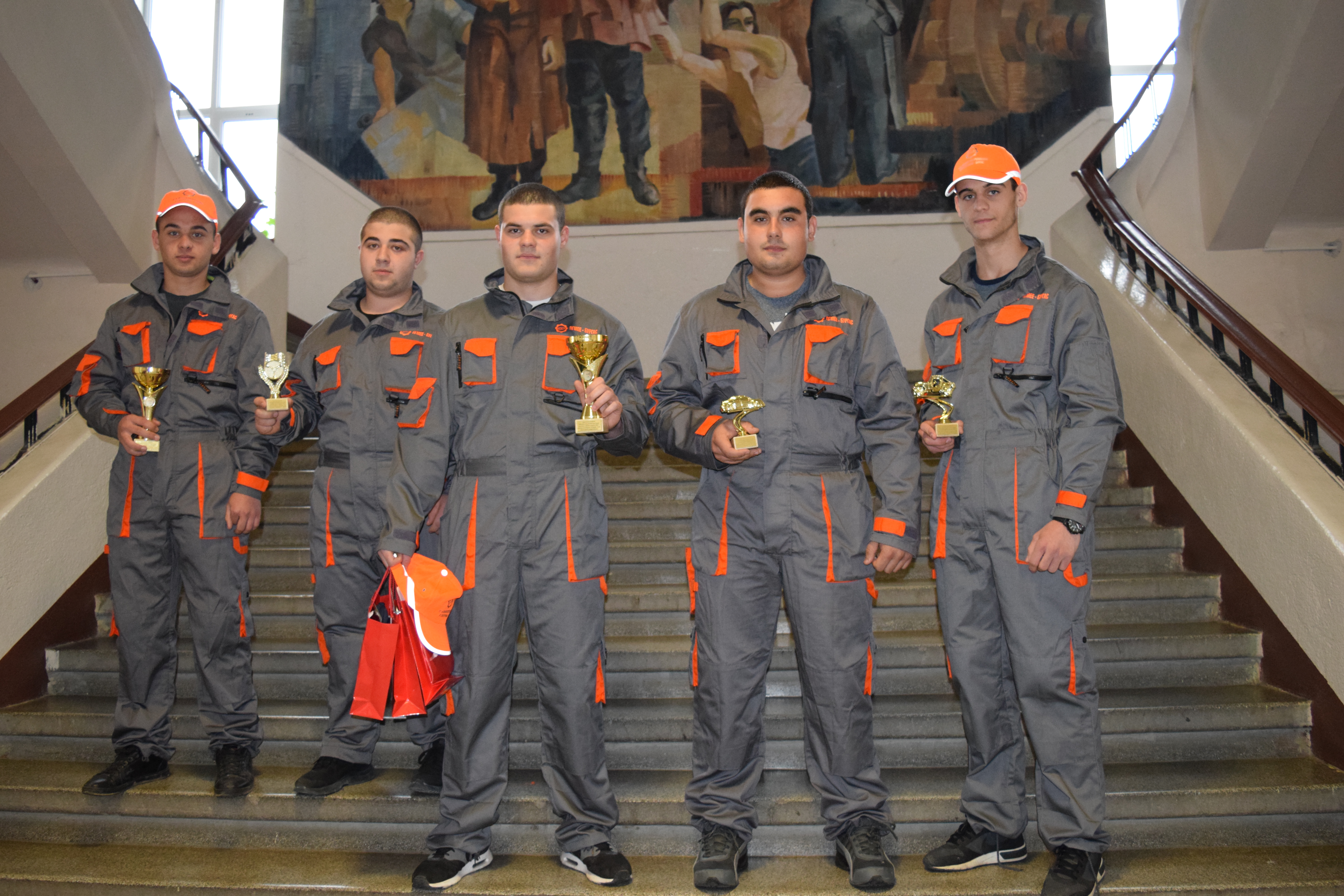 Дванадесетокласниците на ПГМЕЕ Любослав Райков, Калоян Йорданов и Ерхан Ибрям доказаха, че са заслужили мястото си на върха, като спечелиха две отборни първи места - в категориите „Най-добър млад автомонтьор“ и „Най-добър млад водач на МПС“. Отборът бе подготвен от инж. Стефка Велкова, инж.Станимир Велинов, Алберт Калдерон, инж.Емил Ковачев и инж.Пламен Петров.