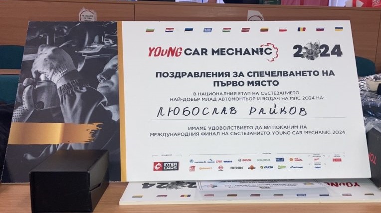 Любослав завоюва и правото да представи България на Международния кръг на Националното състезание „Най-добър млад автомонтьор и водач на МПС“ в Литва.