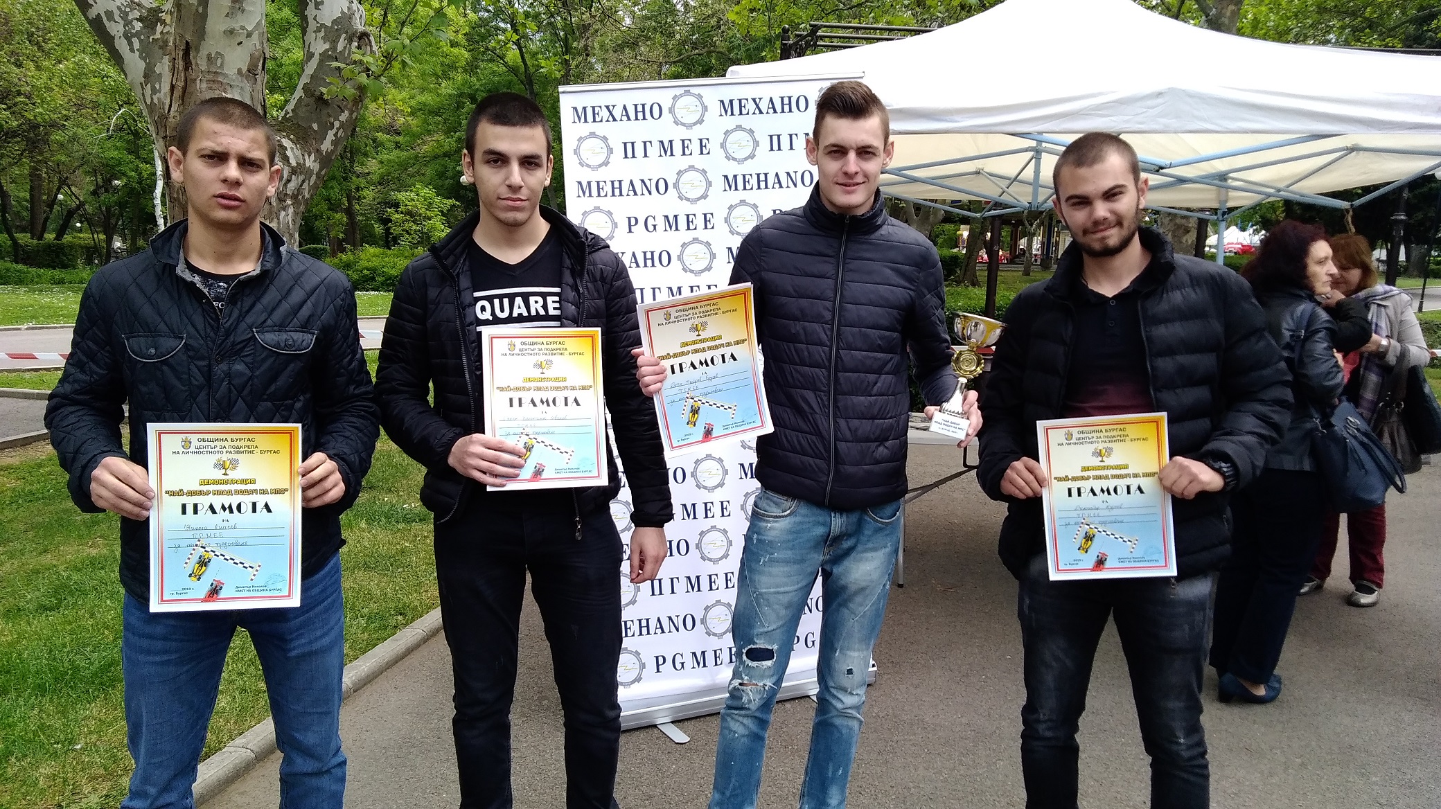 Отборът на Професионална гимназия по механоелектротехника и електроника – гр.Бургас в състав: Васил Николов Ангелов, Алириза Сами Осман, Велин Донков Иванов и Златко Красимиров Харбалиев