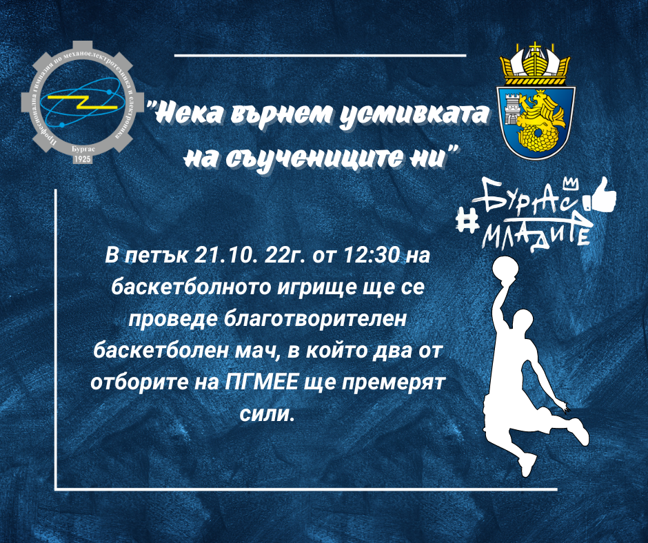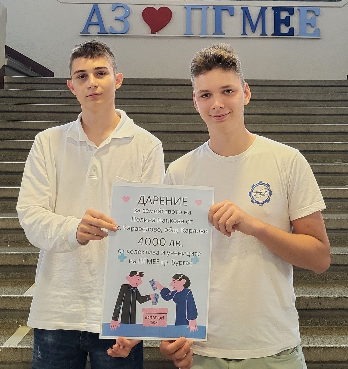 На 28.11.2017г. се проведе хандбален мач с благотворителна цел между отбори на ПГМЕЕ-гр. Бургас и ПГЕЕ “К.Фотинов” на който бяха събрани общо около 1300лв. за Кристин от Бургас, дете страдащо от церебрална парализа.