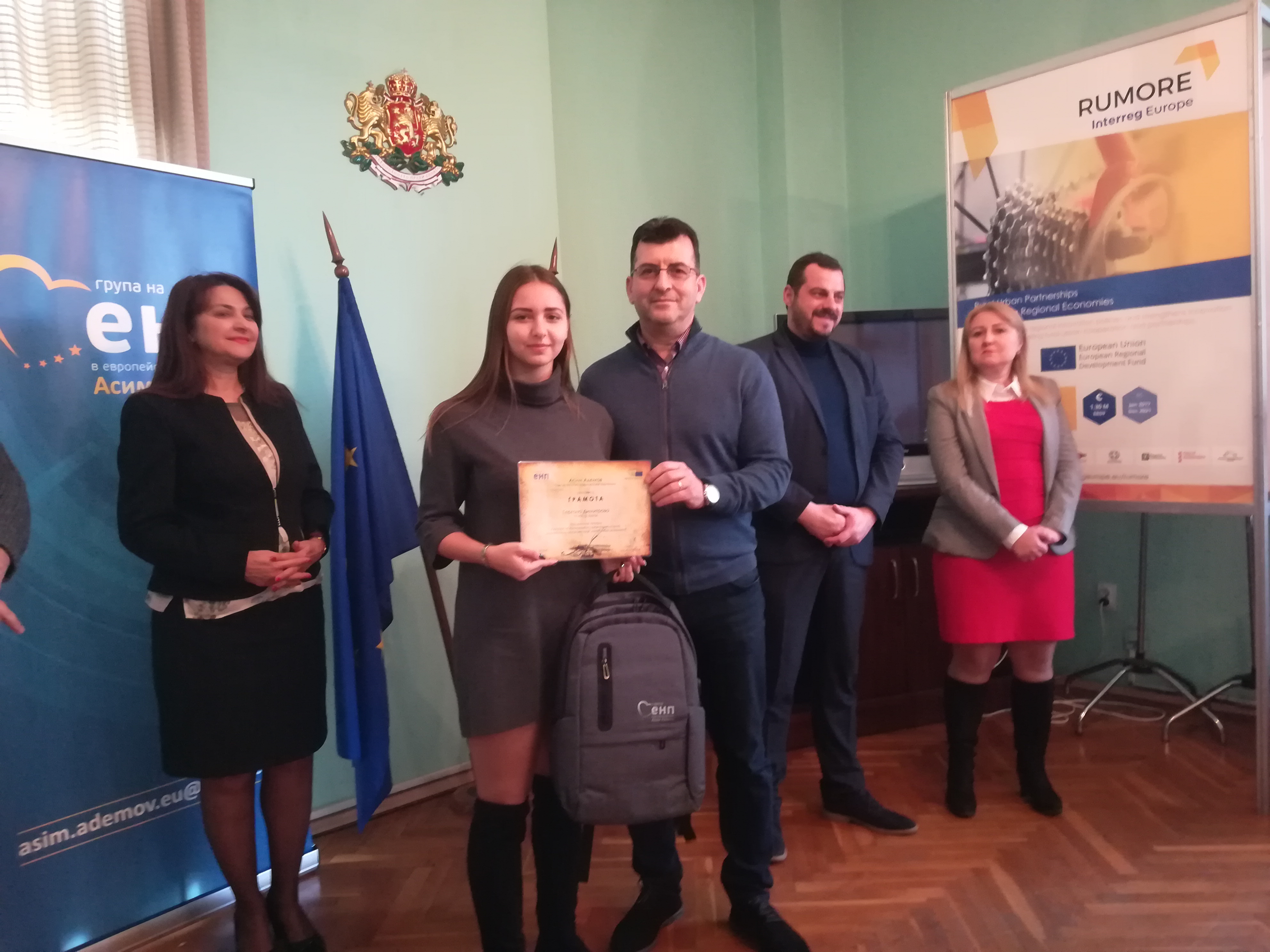 Участие в конкурс за най-добра мултимедийна презентация на тема „Будителите на моя роден край“. Конкурсът се организира от евродепутата от ЕНП -Асим Адемов, съвместно с РУО. Трима ученика взеха участие, като Гергана Димитрова от 12 ж получи грамота и поощрителна награда и бе избрана непосредствено преди победителката. Участие взеха и Дилян Папанчев от 12з и Патрик Петков от 12д клас ,които получиха сертификати за участие.