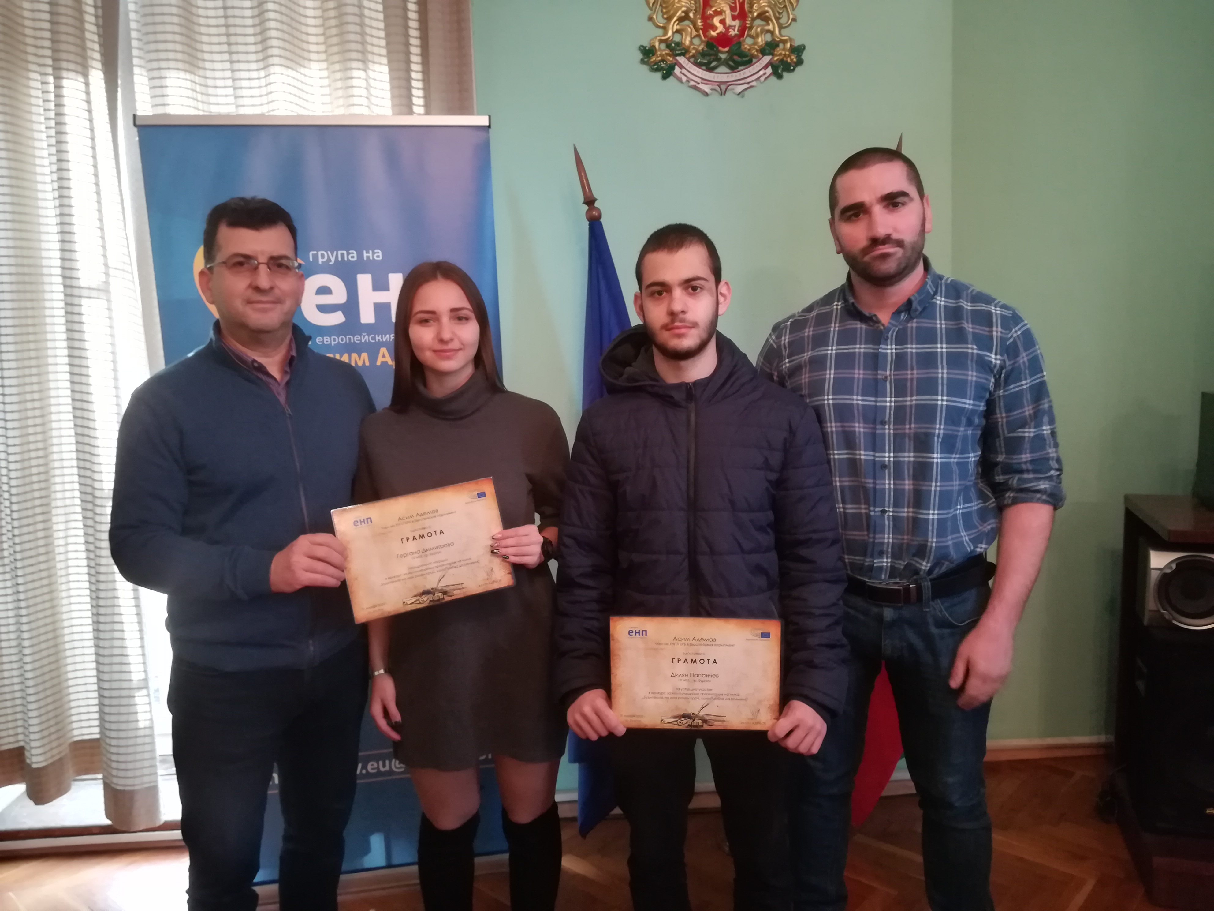 Учениците от ПГМЕЕ: Стоян Маджаров, Мирослав Желев и Атанас Янакиев представиха достойно своето училище чрез своите есета.
