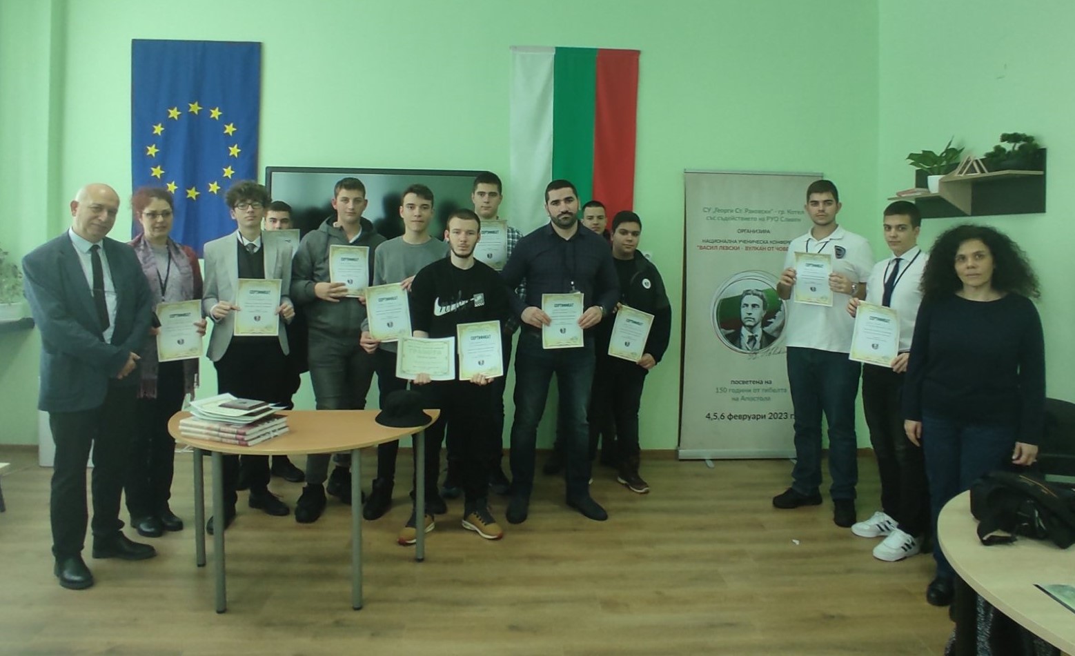 В периода 05.02-06.02.2023 ПГМЕЕ – гр. Бургас взе участие в Национална ученическа конференция, организирана от СУ "Георги Раковски" гр. Котел и РУО Сливен, по случай 150 години от смъртта на Васил Левски . Темата бе “Васил Левски-вулкан от човечност“ Нашата гимназия бе представена от 10 ученика, които изготвиха видео клипове свързани с Апостола на свободата.