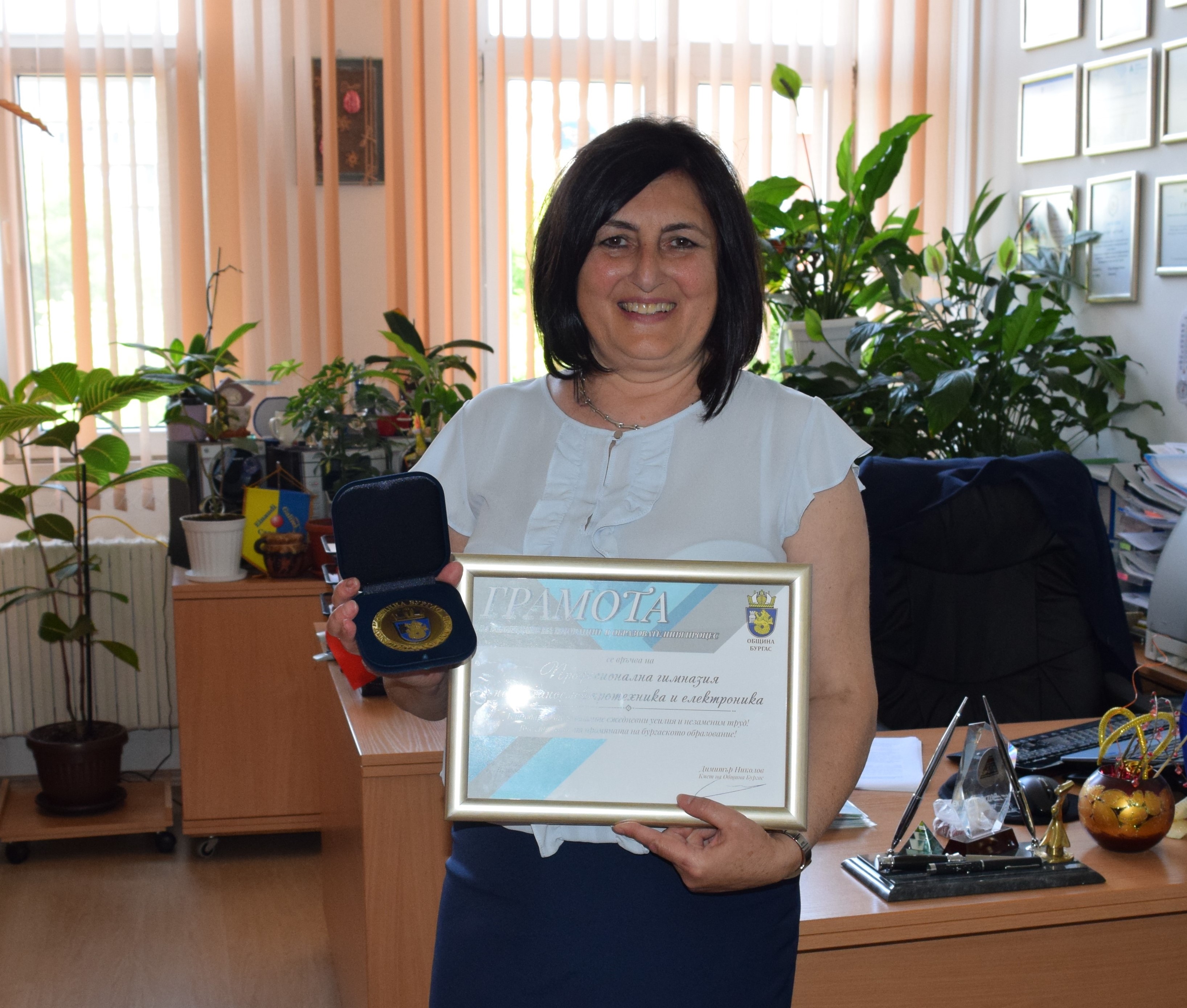 В навечерието на 24 май на ежегодния тържествен прием за дейците на образованието в града, директорът на ПГМЕЕ инж. Роза Желева получи почетна грамота за проявен висок професионализъм при подготовката и излъчването на ученици – участници в национални кръгове на олимпиади и състезания.
