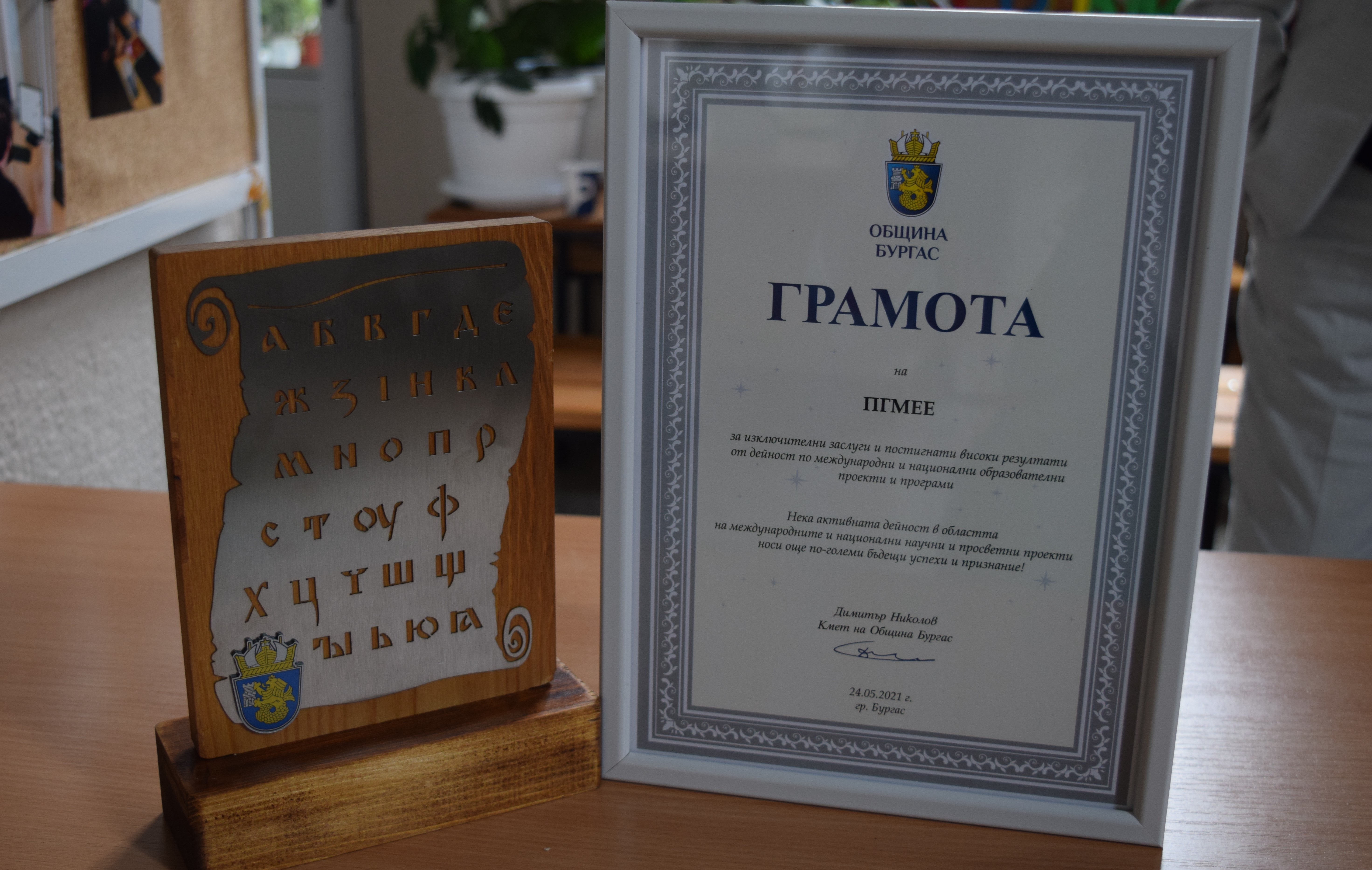ПГМЕЕ получава ГРАМОТА ЗА ИЗКЛЮЧИТЕЛНИ ЗАСЛУГИ и постигнати високи резултати в областта на международните и национални научни и просветни проекти.